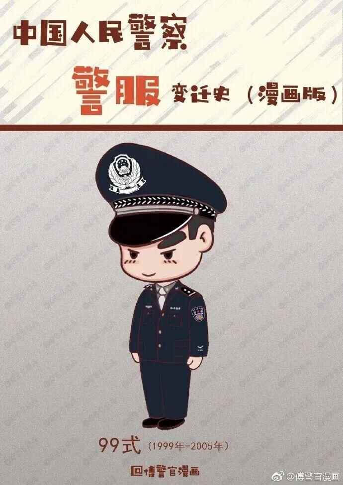 1999年7月27日,公安部警服改革工作领导小组决定:新警服定名为“九九式”警服。“九九式”警服颜色选用国际上警察通用的藏蓝色,交、巡警衬衫采用浅蓝色,高级警官衬衫采用白色,普通民警衬衫采用铁灰色(后统一改为蓝色)。高级警官、交巡警领带颜色为蓝色,其他警种的领带为银灰色(后统一改为蓝色)。服饰佩戴帽徽、领花、警衔、警号、胸徽,大帽徽装订在大檐帽、凉帽、栽绒帽上,小帽徽装订在女呢帽和便帽上。领花为金属领花和电脑绣花两种,金属领花用于常服和执勤服上,电脑绣花用于制式长、短袖衬衫上。