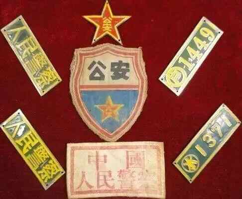 “五〇式”警服为米黄色,左衣领按警种缀钉冠以“治”“户”“交”“消”字首加号码,右衣领缀钉“人民警察”字样的领章,并佩戴“中国人民警察”布质胸章。1954年,取消了领章。
